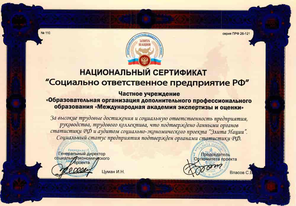 Сертификат соответствия Профстандартам