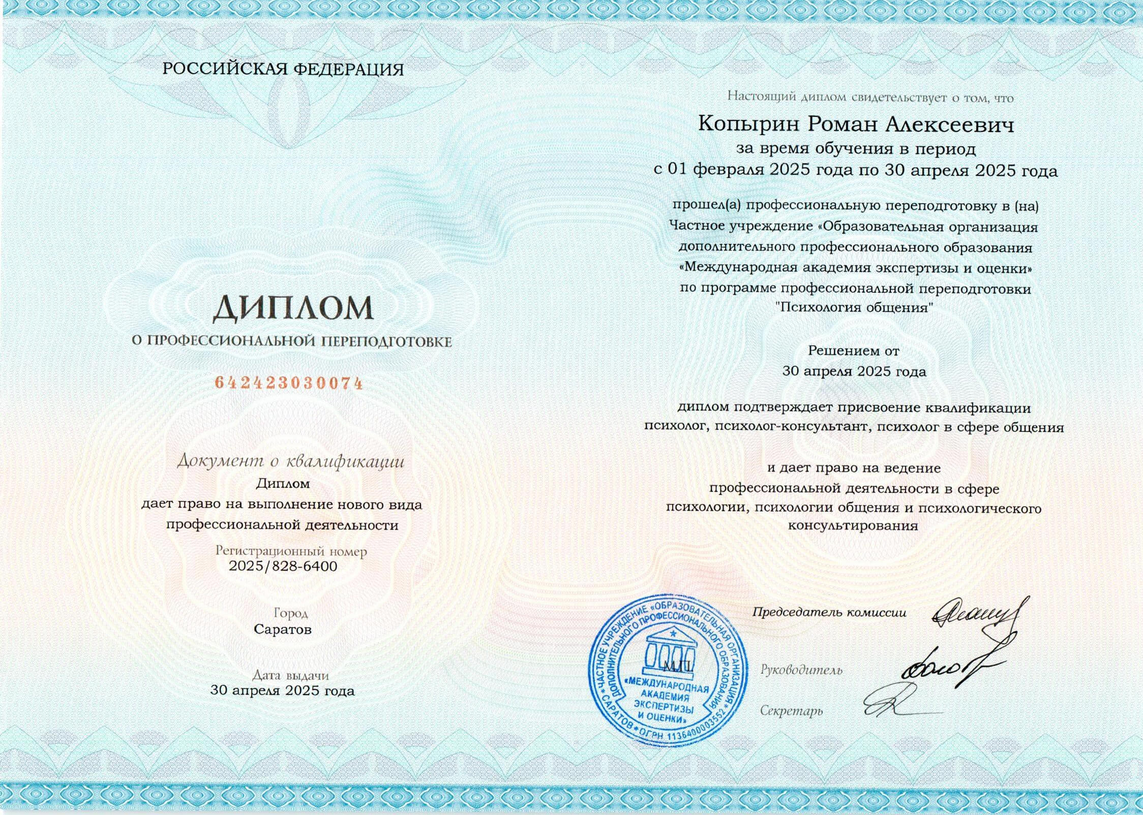 Диплом о профессиональной переподготовке