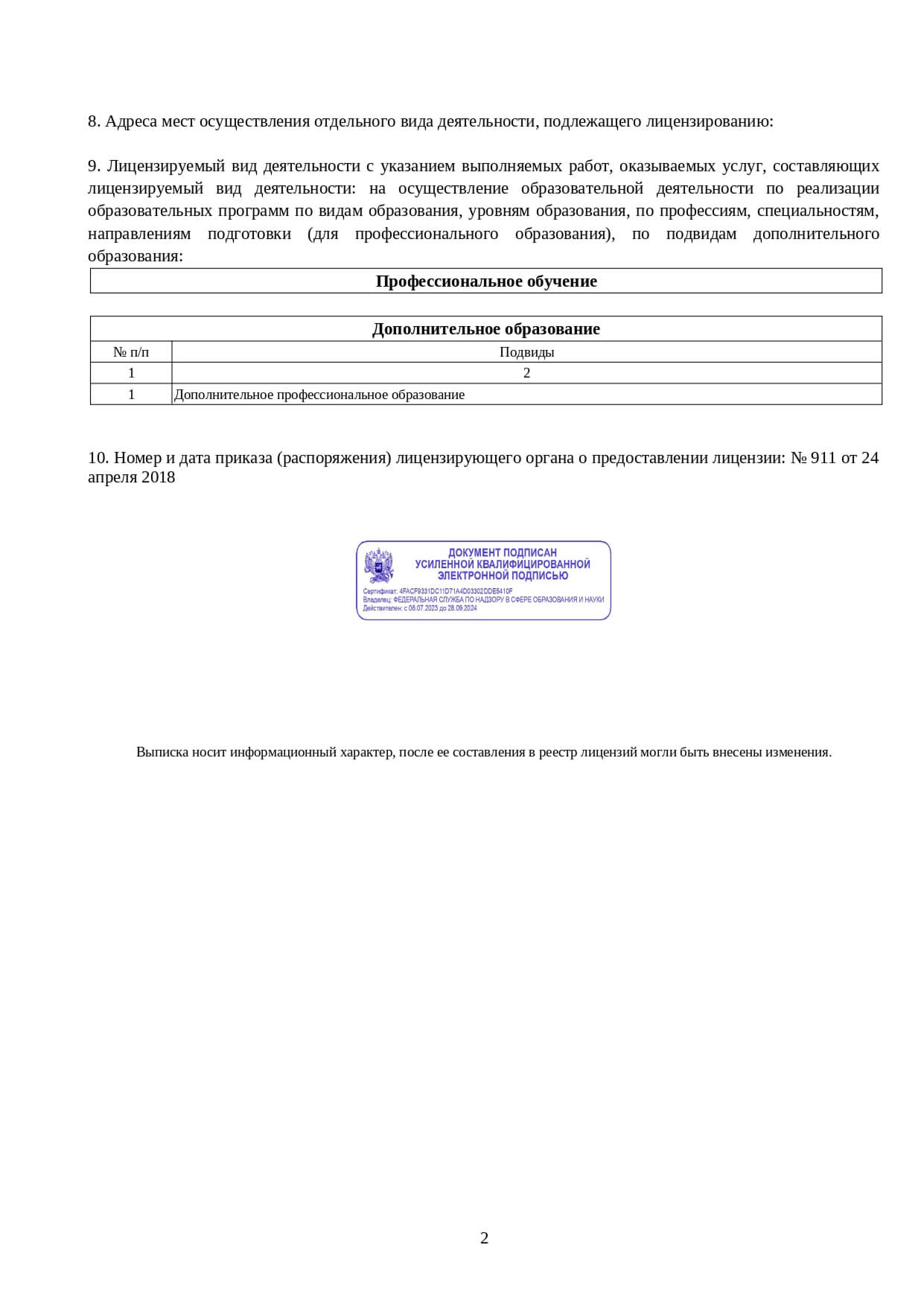 Наша организация подключена к Федеральной государственной информационной системе ФИС ФРДО.