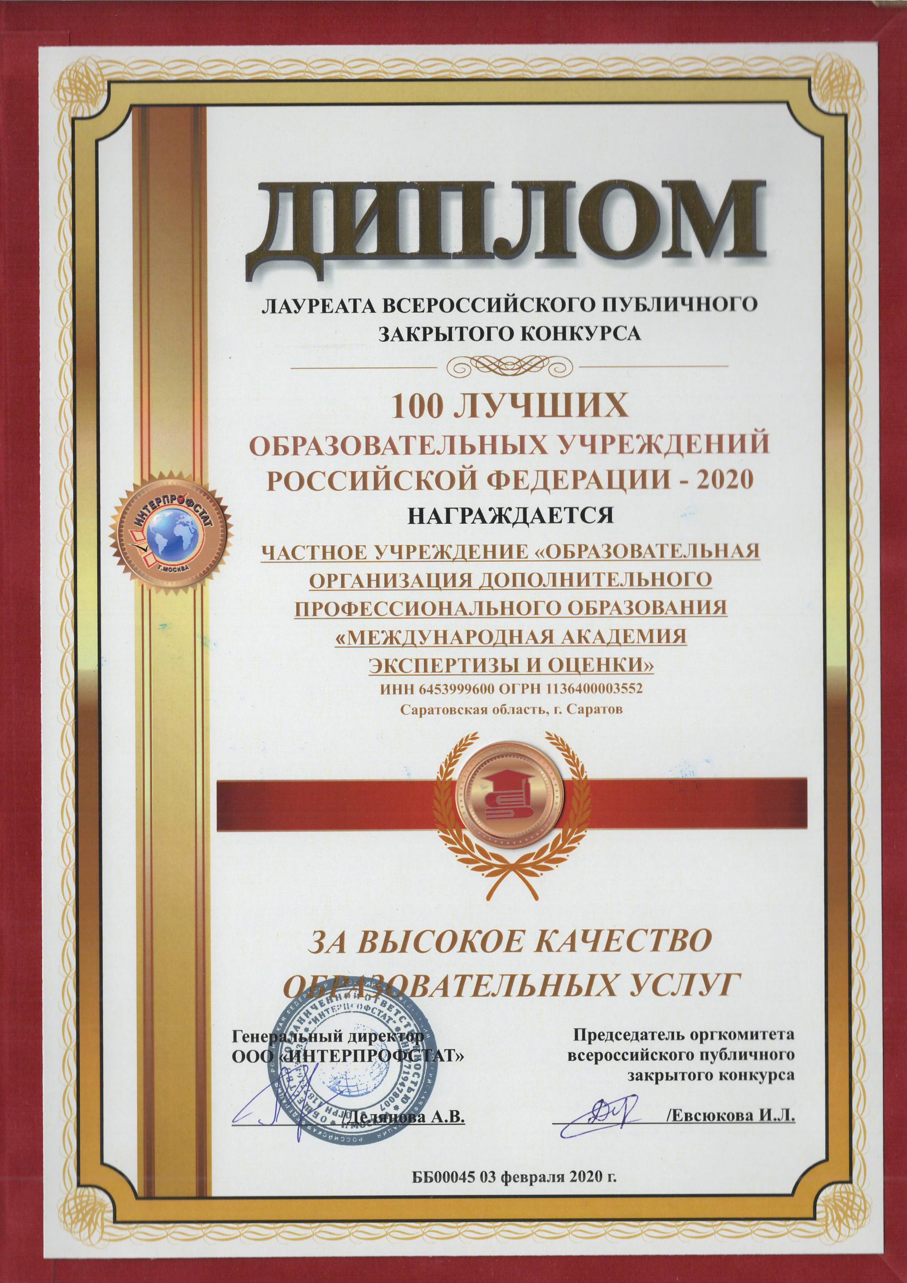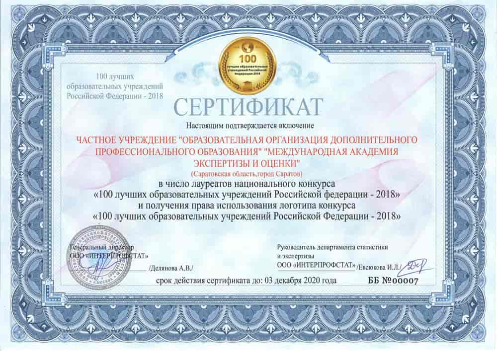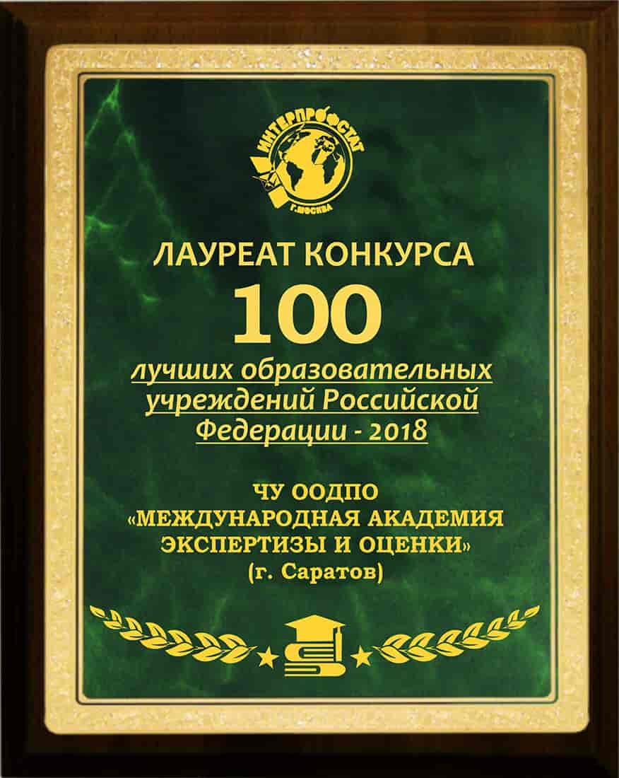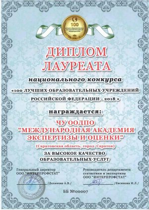 • ТОП-100 лучших образовательных учреждений России по данным Интерпрофстата в 2018 г.;