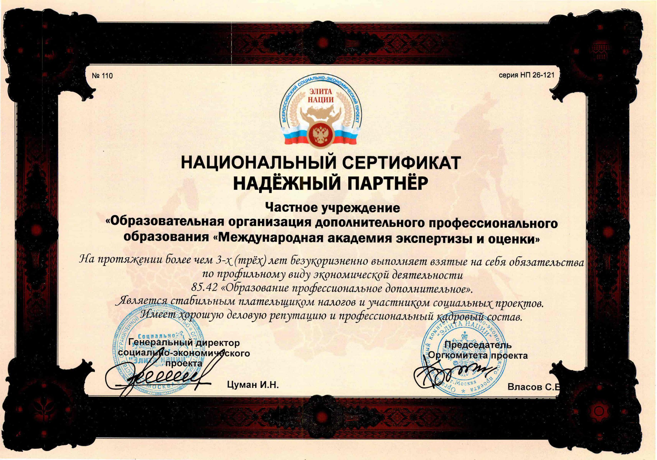 Сертификат соответствия Профстандартам