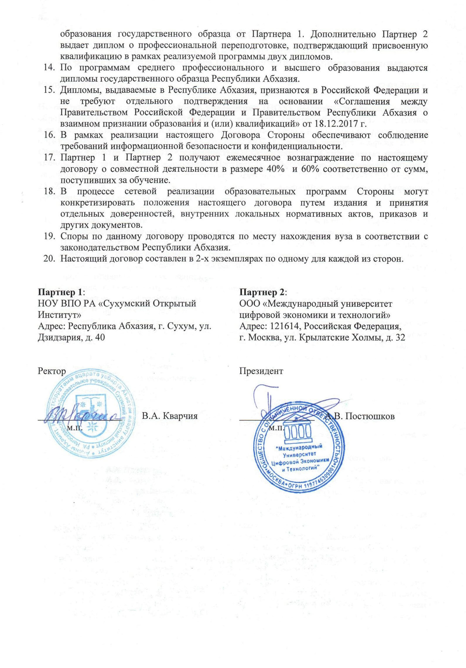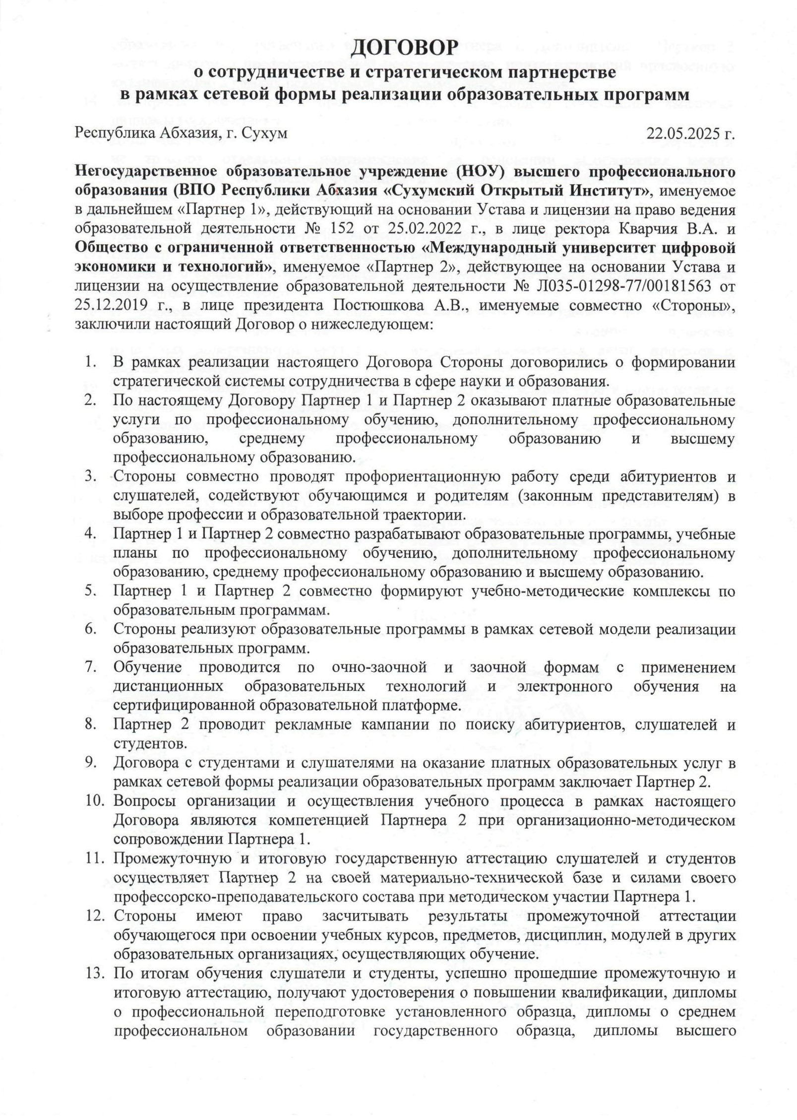 Договор о сотрудничестве с Сухумским Открытым Институтом
