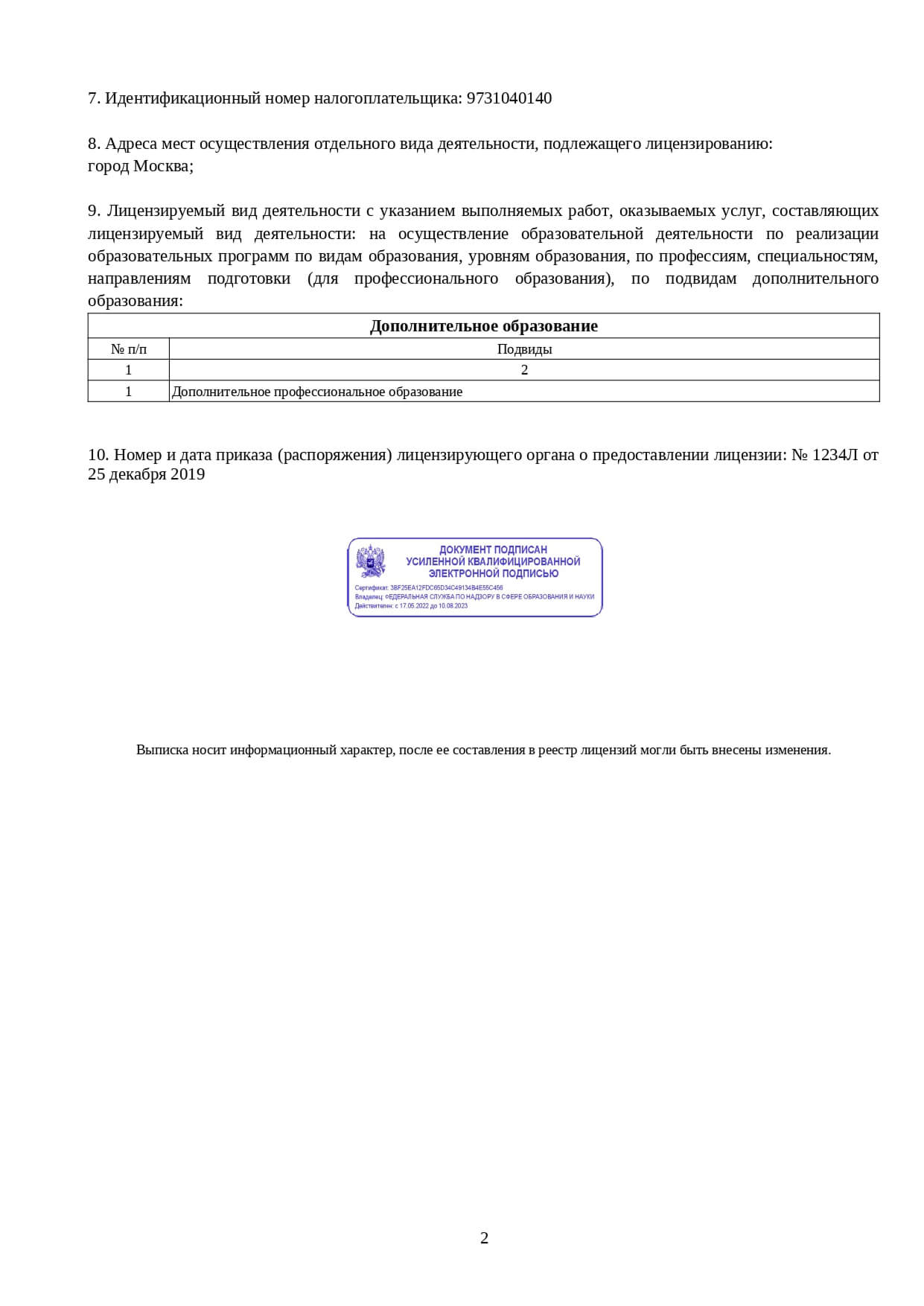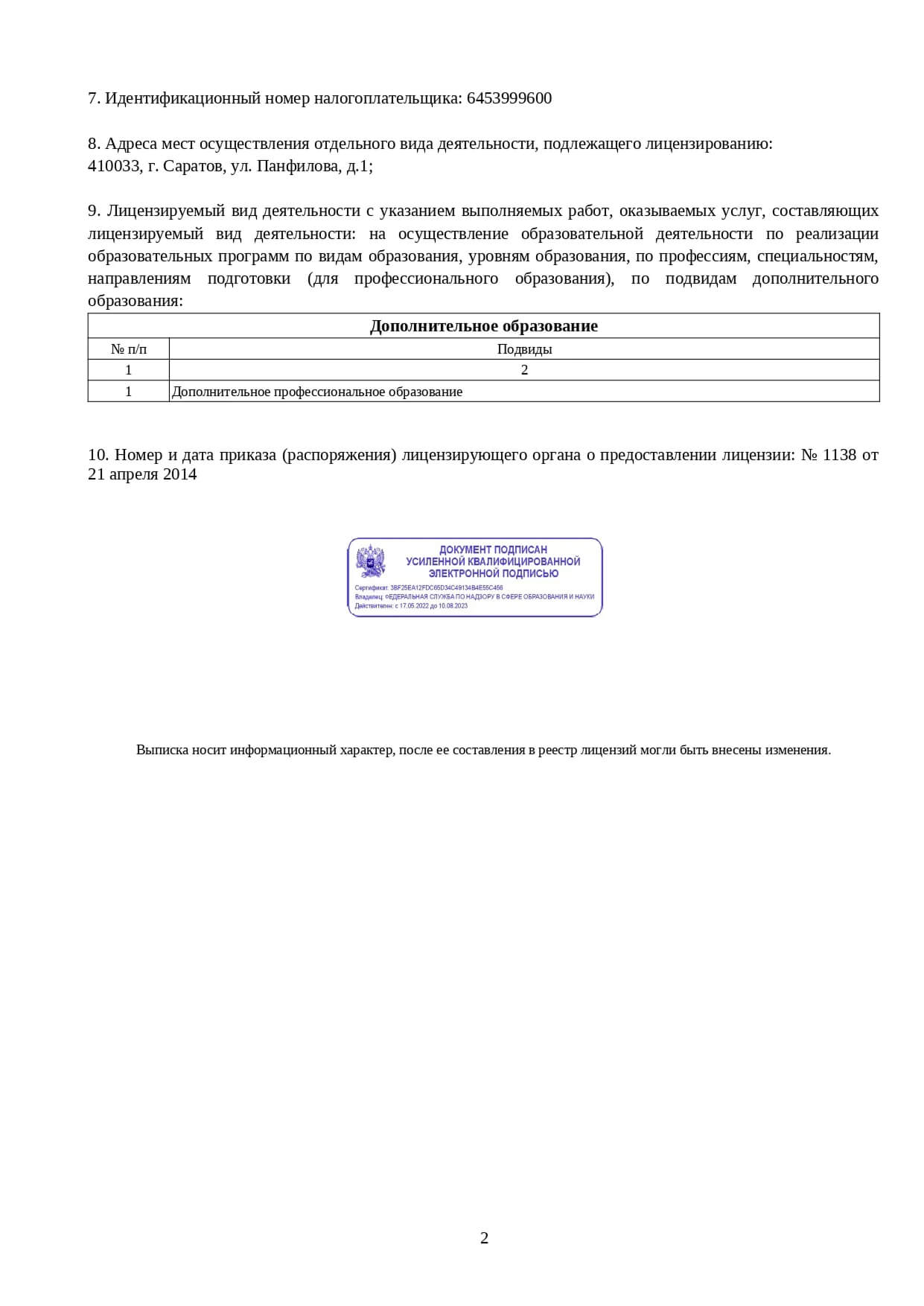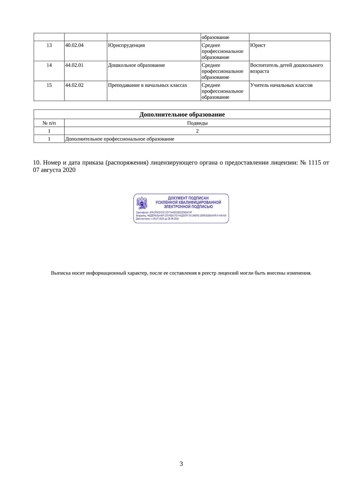 Наша организация подключена к Федеральной государственной информационной системе ФИС ФРДО.